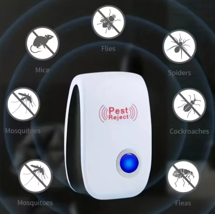Repelente ultrasónico de insectos con enchufe.Repelente de interiores para plagas y control de mosquitos, insectos, ratones, arañas, bichos, hormigas, cucarachas, protección del sueño para niños.Garantizado.1. Mantén la distancia de alfombras, cortinas y cualquier material de absorción de sonido que pueda reducir el efecto.2. El número de roedores y bichos puede aumentar en los primeros días. Y el repelente de bichos los alejará completamente para siempre unas cuatro semanas después.3. Utiliza un paño seco y suave con un poco de lavado neutro para limpiar la plaga electrónica.4. No dejes caer el repelente electrónico ultrasónico de plagas.GARANTÍA DEL PRODUCTO: La garantía cubre únicamente productos que lleguen roto o incorrecto en un plazo de 10 días a partir de la entrega. Para poder hacer efectiva la garantía, el producto debe encontrarse en las mismas condiciones en las que fue recibido, con su empaque original, etiquetas intactas, y todos sus accesorios. Además, no debe mostrar signos de manipulación ni uso."El producto ha sido revisado y verificado en su totalidad antes de ser enviado a la bodega de despacho, garantizando su calidad y funcionamiento óptimo al momento de la entrega."Antes de subir la garantía, por favor envíanos un mensaje describiendo el problema. Así podremos verificar su funcionalidad y ofrecerte la mejor atención